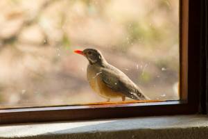 Birds attacking, fighting, calling, singing, staring, pecking, displaying or flying at their reflections in mirrors or windows