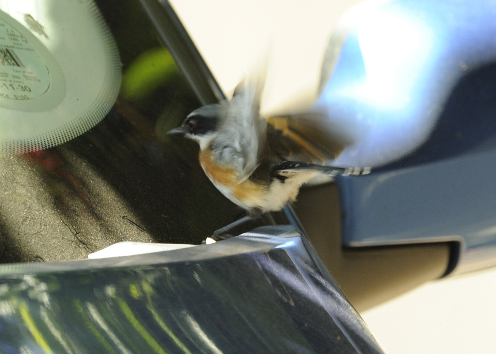 Birds attacking, fighting, calling, singing, staring, pecking, displaying or flying at their reflections in mirrors or windows